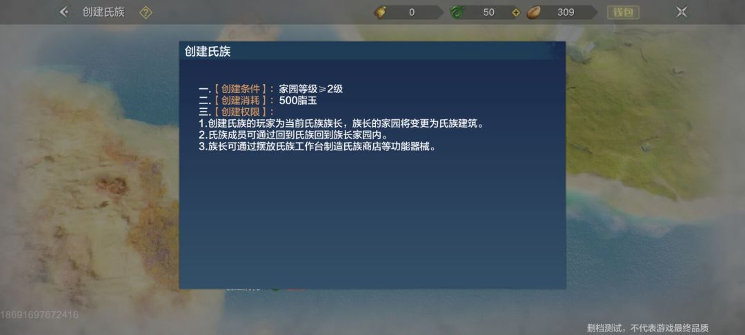 下面就是重点了,在之前的三次测试里,创建氏族消耗的是贝币,这次改动以后,创建氏族消耗的货币由贝币改为了更为珍贵的货币脂玉,提高了创建氏族的条件。