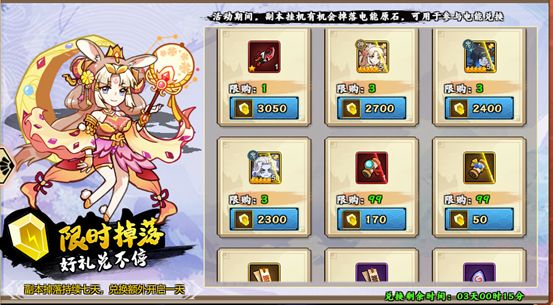 2、原石兑换:活动期间内,副本挂机有几率掉落电能原石,可用于参与活动兑换5星英雄、召唤卷轴、御灵卷轴等稀有奖励。