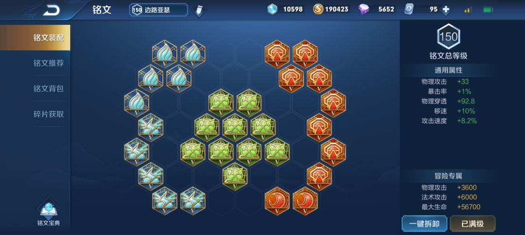 这套铭文卡8.2攻速阈值,加上近百的穿透和10%的移速还有1%的信仰暴击足以让亚瑟在前期硬刚对手。