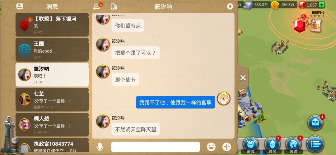 121服的BRD盟我都不知道是什么人。明明我们把别的盟打了,他们过来抢资源。我忍了,还让我们踢人然后好抢我们盟友资源现在又围着我们联盟说要把我们联盟灭了。有哪位大哥过来帮帮忙。