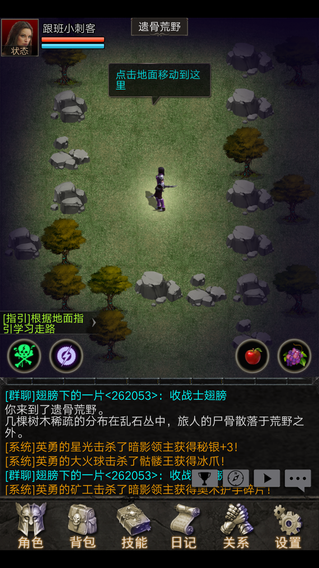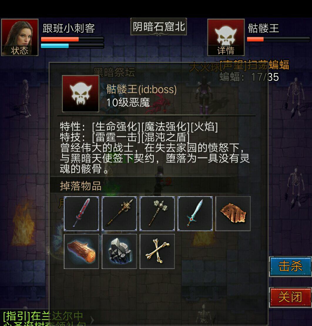 下面讲一下野外boss,我们的第一个野外boss(骷髅王)野外boss是比较主要的武器来源,每一个野外boss被击杀后特定的时间后会再次复活(是否复活可以在兰达尔的广告牌处查询)