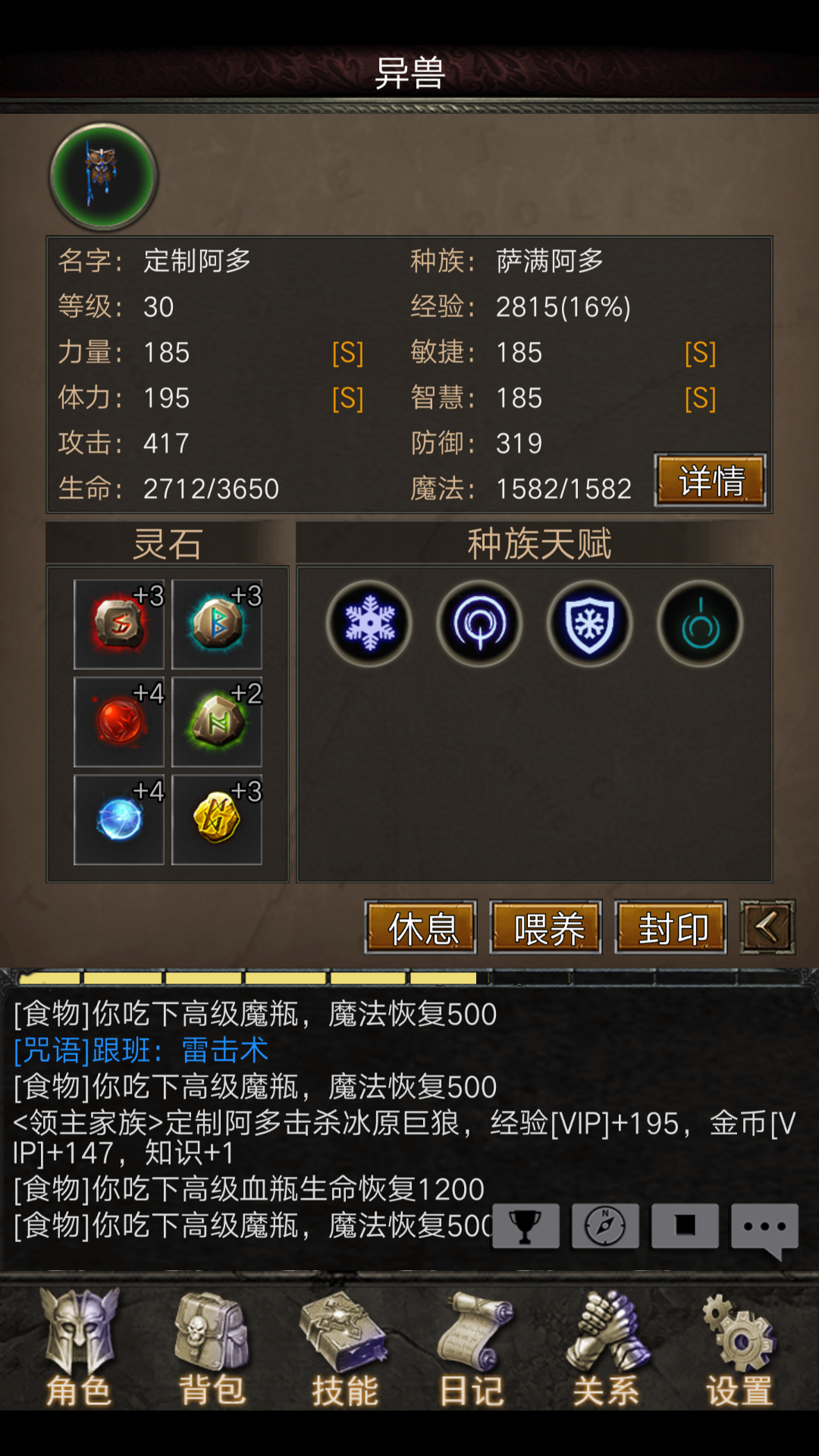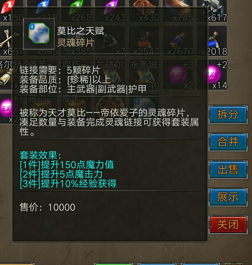 其他方面也不是太了解了,异兽的话因为一直用的黑金礼包送的这把上个截图吧。