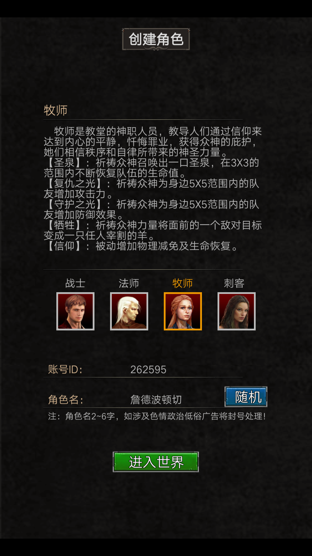 游戏现在一共四大常规职业:战士、法师、牧师、刺客