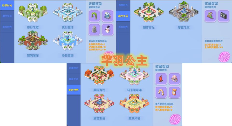四季时光优先凑齐,然后是都市生活,最后是吃货世界。。