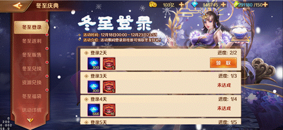 比如12月18-12月20日是魂师主题活动,单笔充值除了正常激活魂师活动外,还会激活冬至返利的相应档位!