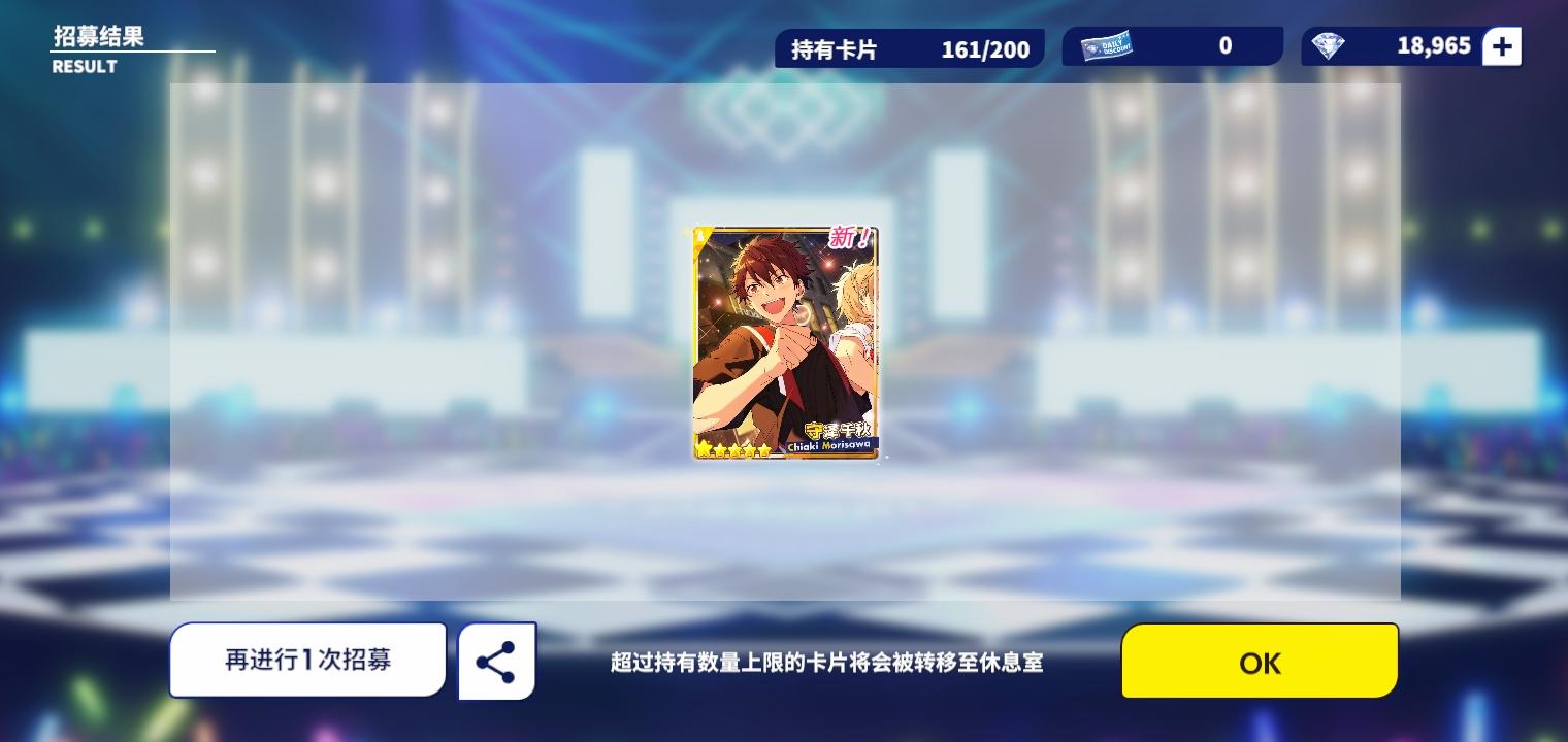 单抽出彩光,一开始觉得单抽五星就够了五年寿命没了,虽然台词是千秋的但应该是普五叠卡吧,没想到是活动5星