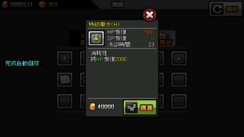 另外如果有人不想花錢買紅水和藍水的話可以去日常任務那送一送死,在日常任務那死了之後會直接滿血滿藍但要注意的是死亡之後并不會自動保存
