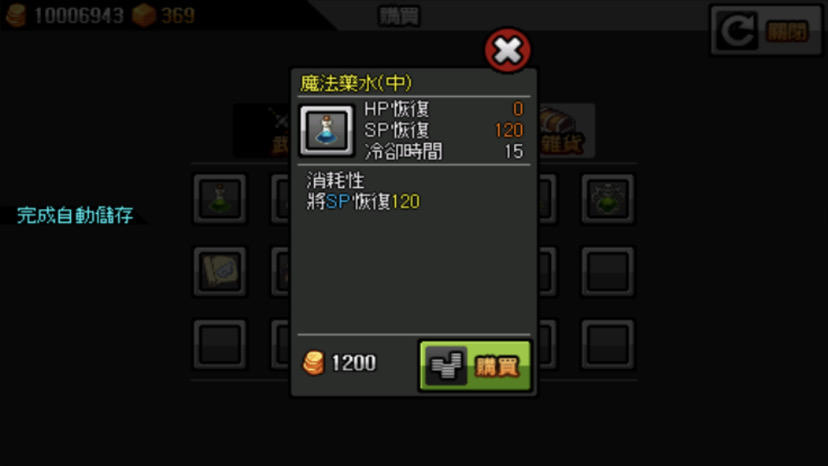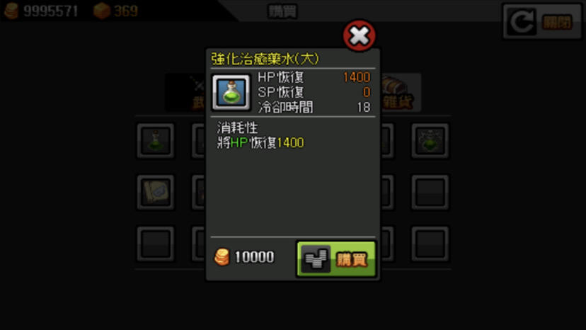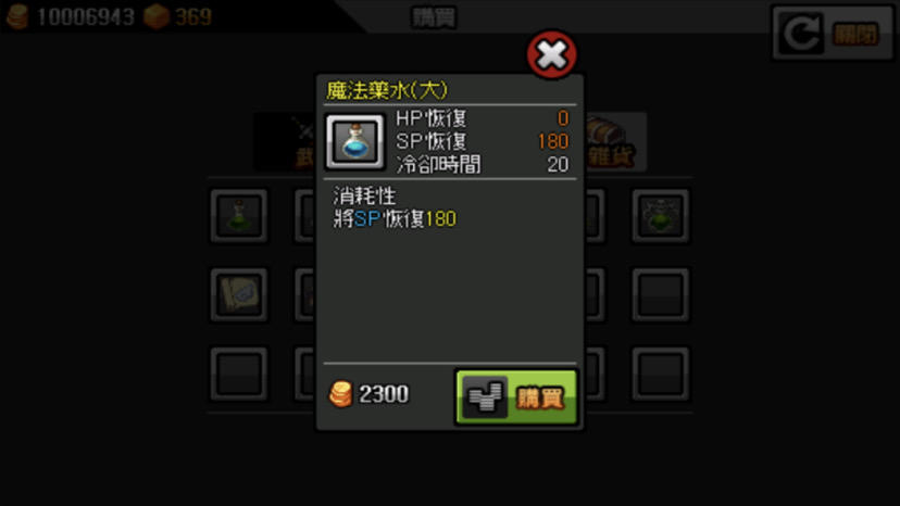 尤其是越後面紅水的價格就越恐怖(雖說錢的用途好像就只有解開翅膀卡格子,第四個翅膀格子之後的都是焦糖來解開,合成翅膀卡,材料兌換內的目錄重新整理(在背包的下面)以及偶爾有任務要求要的物品要自己去商店買之外就只有買紅水和藍水而已了⋯⋯所以錢到後面就沒什麼用處嗎?)