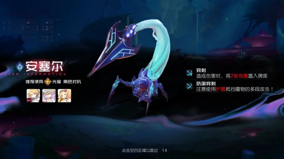 分解:持续造成伤害通过回血减少层数,回合结束时,受到施加者攻击60%的精神伤害,每恢复生命时层数减一;分解强化:分解的角色受到和造成的伤害提高,分解状态的角色,每层伤害提高30%,受到的伤害提高30%,这关boss我方只需要携带一些回血牌组或者每回合持续回血的卡牌就比较简单,例如希亚专属卡牌可以持续回血,
