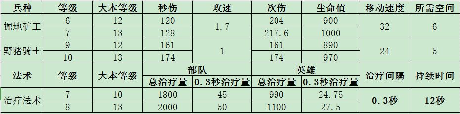 在矿猪流之前就有猪流或者矿工流的打法,而随着13本的更新,野猪和矿工的等级上限各提升了一级,同时治疗法术的等级上限也由7级提升到8级,这就使野猪和矿工在自身属性提升的同时能享受到更强的治疗效果,