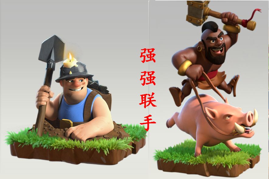 矿工和野猪的组合让我想起了一个词“挡拆”,通常我们打矿猪的时候,是先下矿工的,矿工在抗住第一层防御建筑伤害的时候下野猪,这时候野猪会直奔这层防御并在第一时间打掉他们,而矿工清掉外层建筑后,由于速度比野猪快,所以能迅速的跟上甚至超越野猪完成抗伤土遁,抗伤土遁的工作,而野猪则负责你抗伤,我输出,迅速打掉防御,两者相得益彰(是否颇有费老师,你追我,你追上我,我就让你嘿嘿嘿的意思呢)。
