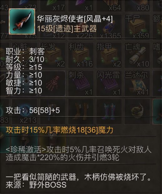 在野外、幻境等探险时可以获得各种凝练材料,包括皮革、木材、铁矿以及后期稀有材料龙晶、星尘等,打怪获取的装备可以在铁匠铺消耗材料凝练出大量随机魔法属性如吸血、暴击、眩晕等,装备可以多次凝练属性叠加,但每多一次凝练需要的材料会越来越稀有,需要到高级地图才能获得,通过多次凝练之后,很难出现两件随机凝练属性完全相同的装备,为了直观的看到凝练强度差异,对装备的凝练,从最初随意凝练就能达到的<卓越><华丽>等级,到需要花费高级材料多次凝练才能达到的<神圣><神罚>等级,追求好的装备底板,高等级的凝练效果给玩家带来持续的乐趣。