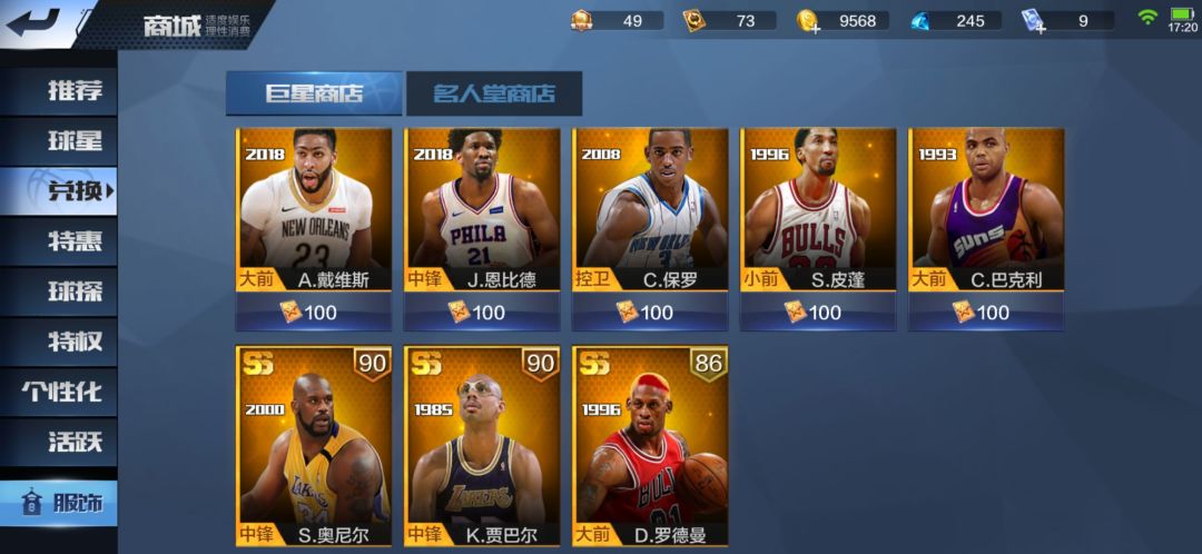 总有欧皇能抽到100兑换卡(但我从来就没抽到过),以下是巨星商店兑换球星选择推荐: