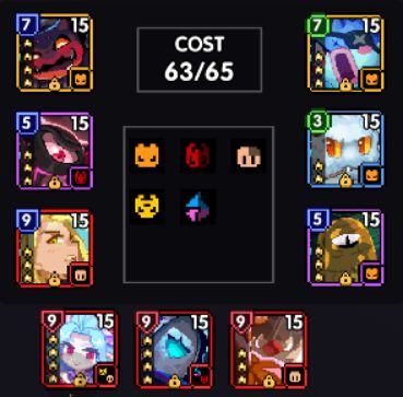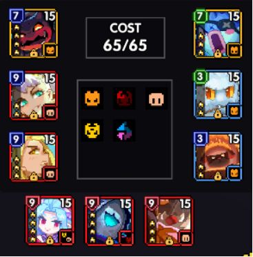 65C大佬基本款,对于大佬来说,这批卡可能背包里都有个两三张了,一套比较好凑的组合。值得注意的是,这一套卡片最好是可以在副属性上找到10%的冷却缩减,否则就只能雪球换滚兽(或者其他的冷却3C饰品卡)了。