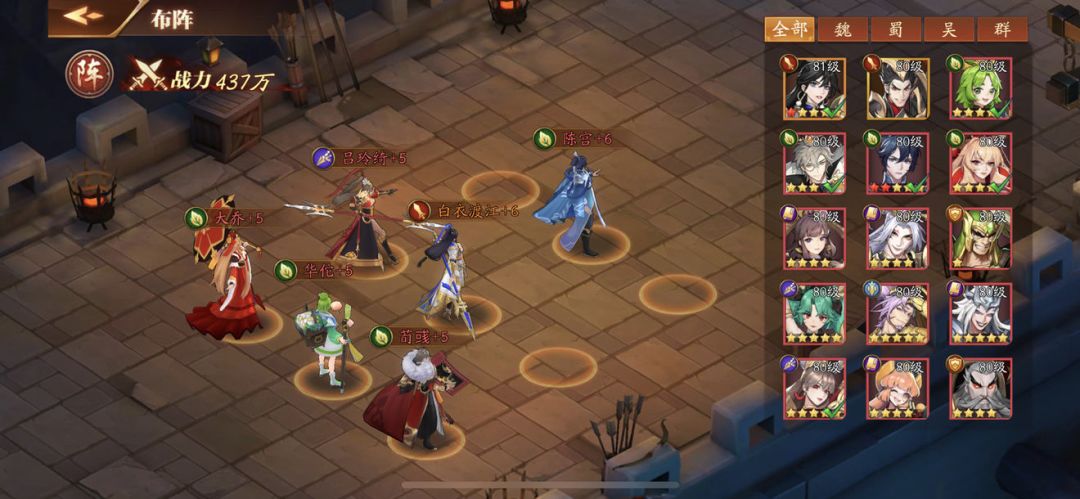 先放一张75级之前的阵容。主要是75级之前没有金将。