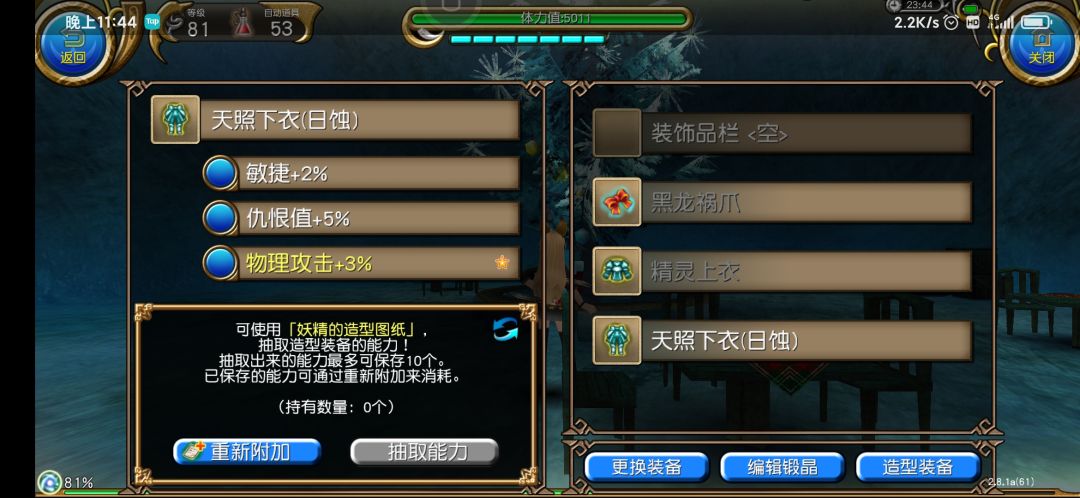 首先你可以从一个部分的时装上提取上面的属性,然后附加在同部分的另外一件时装上。听说是全部覆盖不管你是有几条属性。