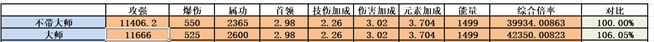 对于大师而言,影响的是双暴击武器与单暴击武器,故分开而论带大师卡:首饰双暴击,钥匙水功攻强
