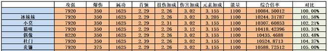 那么可以得到偶像>杜门>炎镰>猫咪>大师>小莫>冰妹妹