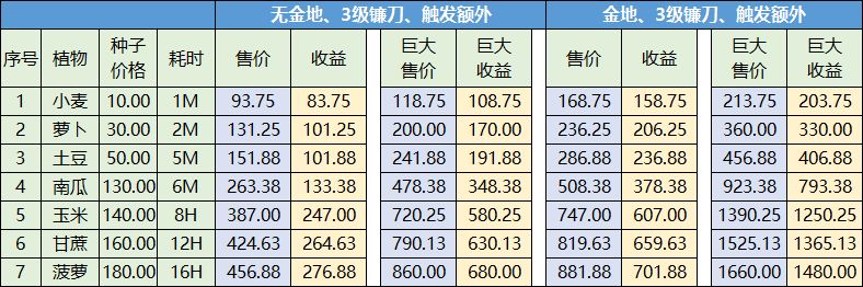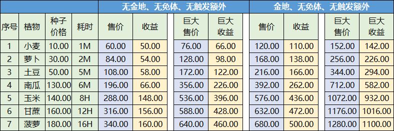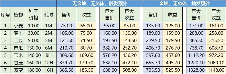 4.本贴只研究小麦娃、萝卜娃、土豆娃、南瓜娃,金地只研究玉米娃、甘蔗娃、菠萝娃,其它作物经过对比,不适合做爷爷的娃,就打入冷宫吧。