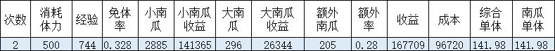 500体力的四级镰刀战场,南瓜单体141.98【预期150.93】,巨大概率为9.3%【低得可怜,没钱给他穿南瓜衣服,四级镰刀一直一来都是个迷】。