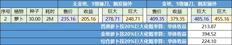 备注:小萝卜在比赛期间涨价【村长收购价为27,高集市6块,上届比赛数据】,大萝卜不变【32块】