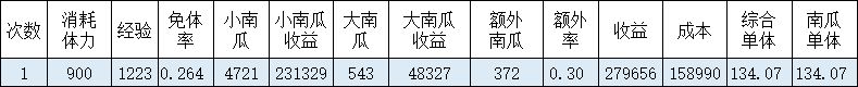 900体力的三级镰刀战场,南瓜单体134.07【预期133.38】,巨大概率为10.3%【偏低,没钱给他穿南瓜衣服】。