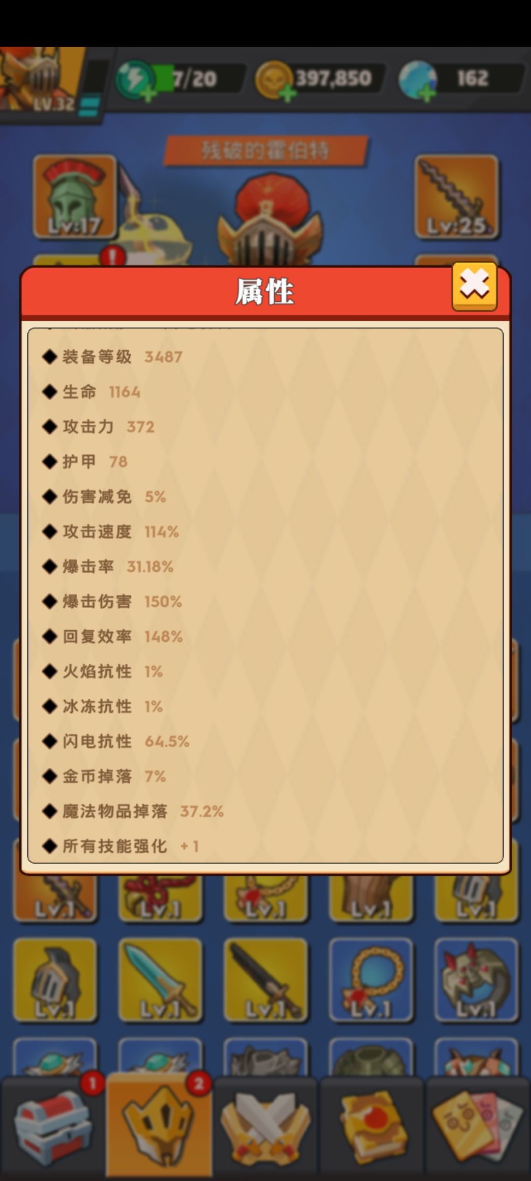 项链和戒指应该是技能+3,可总数据上还是2,技能加三没感觉出强了多少,攻击17下出次锤子的技能,就开头来一下,后来就没有了