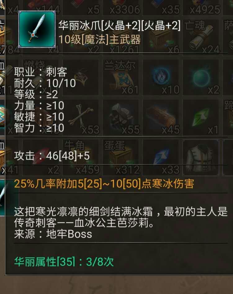 三人经过一番苦战,终于放倒了骷髅王,金光一闪,骷髅王掉落出一件装备。松涛捡起来看了看说:“哇,是冰爪哎!这可是好东西,是刺客专用的武器,十级武器已经可以媲美二十级的普通武器了。”