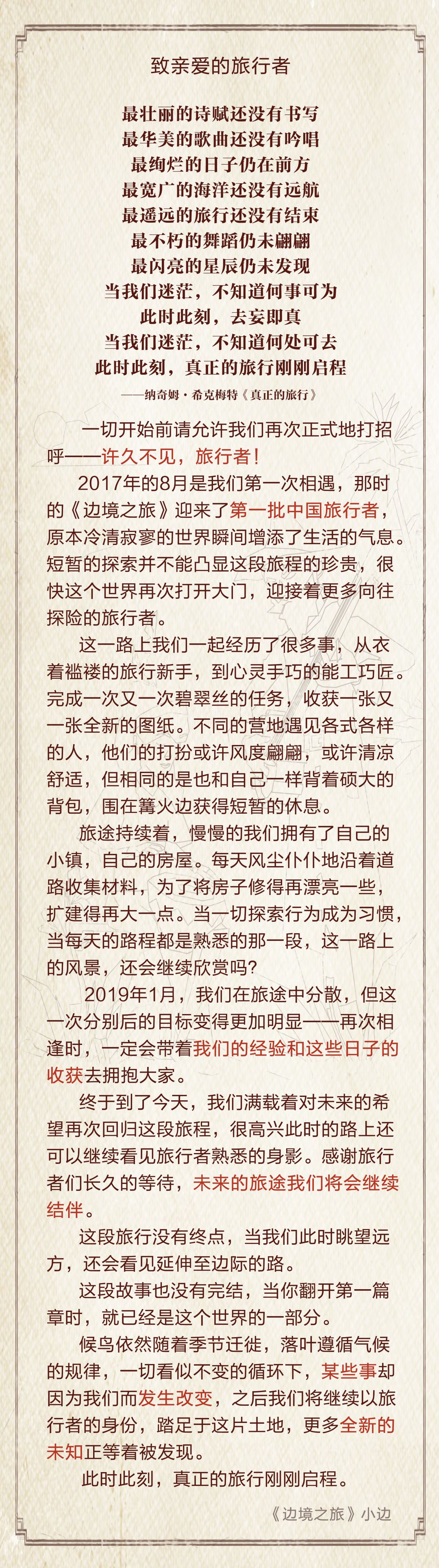 ★更多更详细的测试信息将会在之后发布,请旅行者们多多关注《边境之旅》官方微博微信~