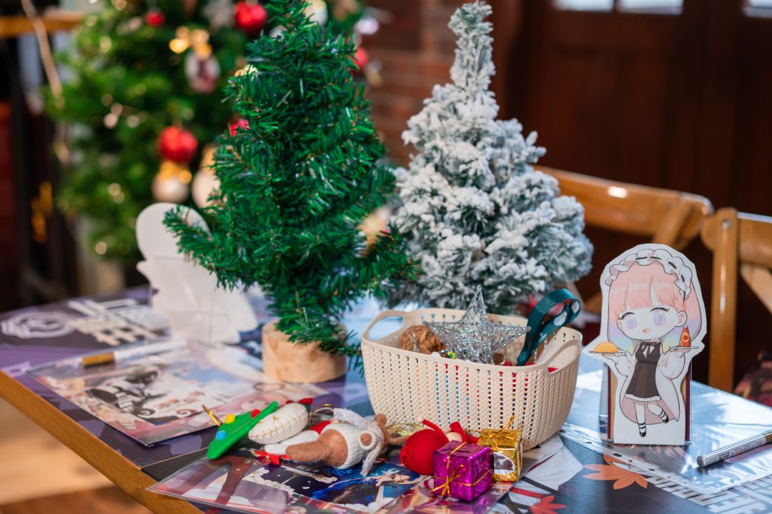 圣诞限时活动现场,无论是可爱的徽章和杯垫,还是精致小巧的立牌,都透露着浓浓的圣诞气息~