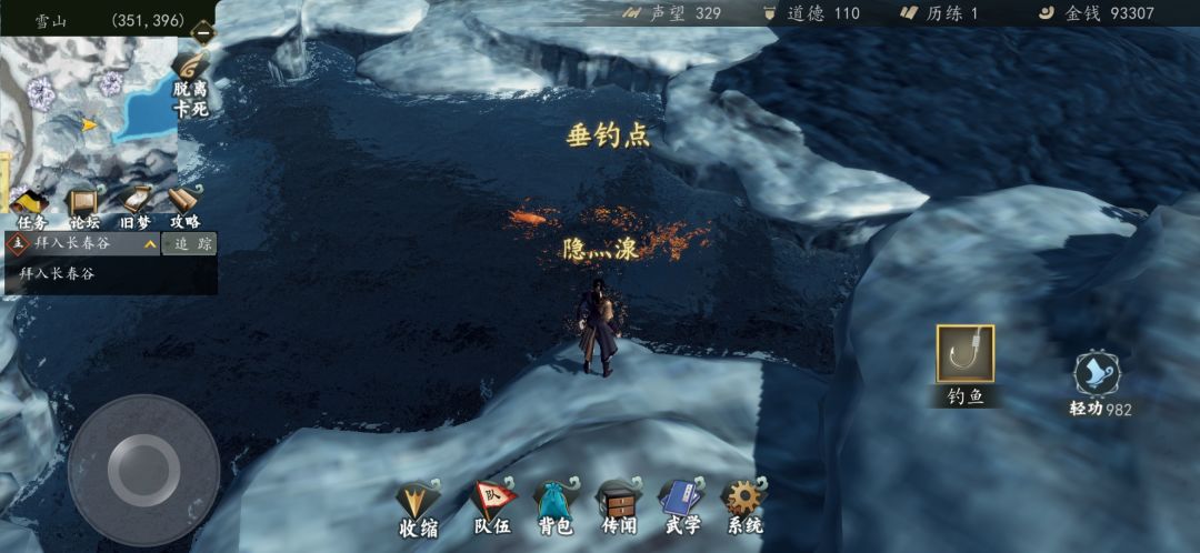 2.去雪山的冰湖采天池冰莲,需要打一架之后才能采(不确定采莲是否为学习新九阴的必要前置,反正我采了……)
