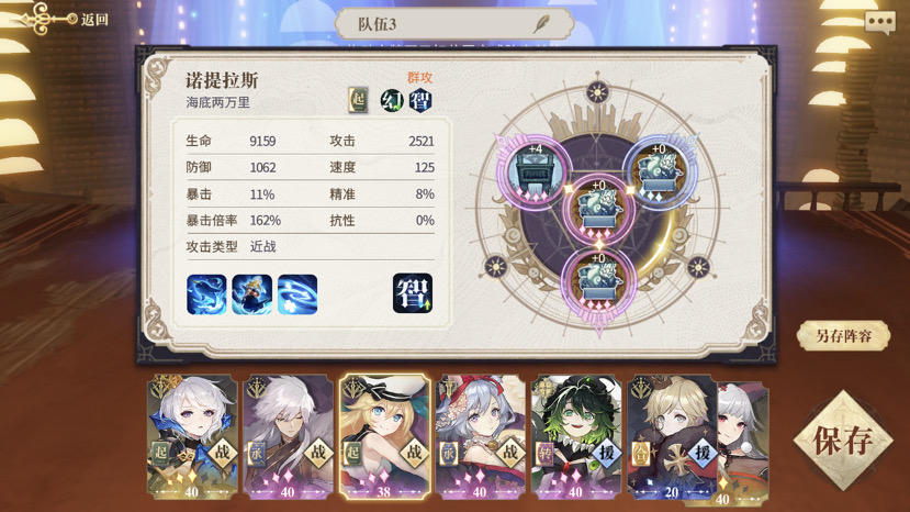 暂时没想到龙妹能用啥替换,注意BOSS站站位,用兰亭和海底抗后面两个怪的大,最好保证不死,海底被动要求3级,猫平a和被动3级
