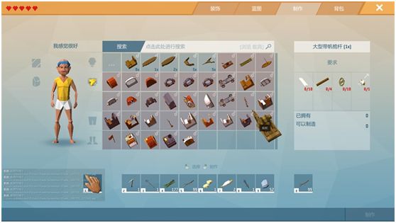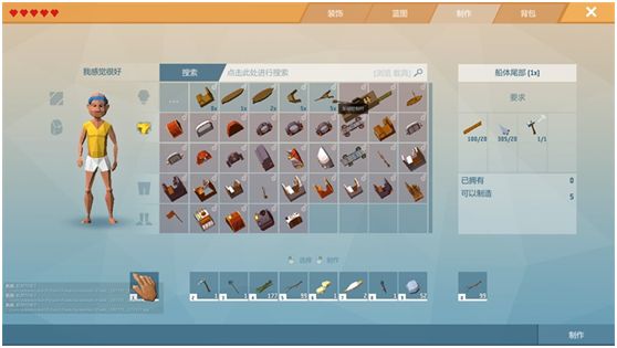 船舵的所需材料:x10原木、x10钉子、x10绳子、x1任意斧头、x1任意锤子