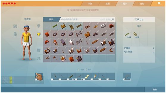 竹棍可以通过砍伐竹子拾取获得,而绳子可以通过拾取草来合成,3个草合成1条绳子。