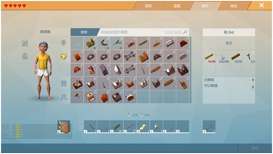 小船的制作需要岛主升级到“铁器时代初期”,通过熔炼炉、锻造炉2个工作台在“制作”中加工出“钉子、锯子”两样工具。