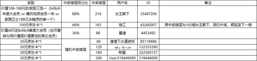 1、总楼层数的88%楼:价值168-188元的奖励三选一(bilibili年度大会员 or 腾讯视频会员一年 or 家园卫士188元冰精灵时装一个)