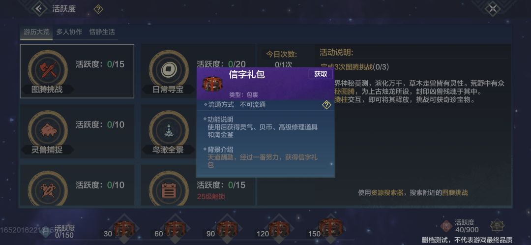 游戏中的活跃度活动能获取的经验也是不少的,每日完成活跃度内的活动要求可获得相对应的活跃值。达到一定活跃值时可领取礼包,一共5个阶段礼包,礼包内包含经验及物资,根据领取时玩家的等级及活跃值越高领取的礼包内奖励越高。周活跃度礼包奖励为货币脂玉,无经验奖励。