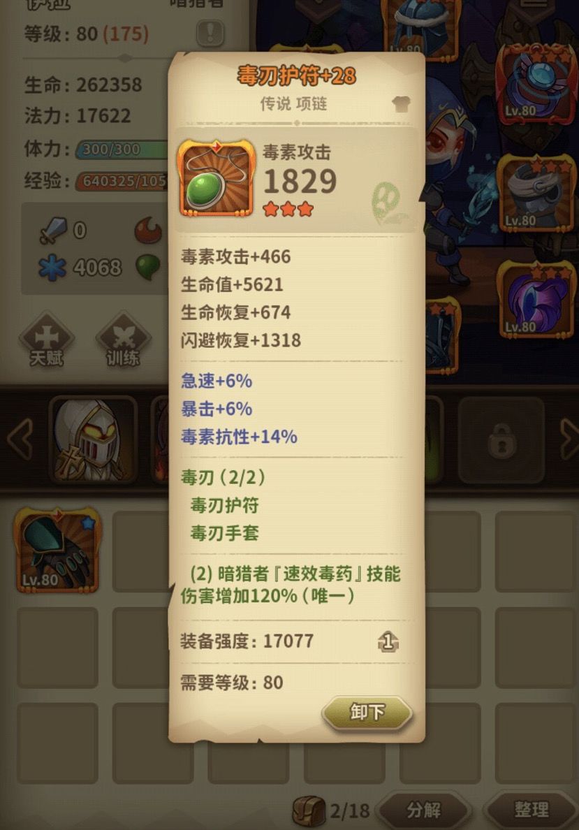核心装备:毒刃套「毒刃项链+毒刃手套」