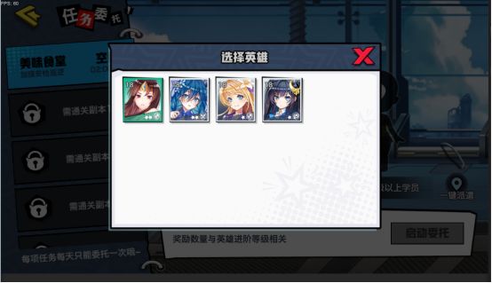 当PVE推图到相应关卡时,将开启委托任务,委托任务可获得战斗记录,战斗记录用于学员升级。▽