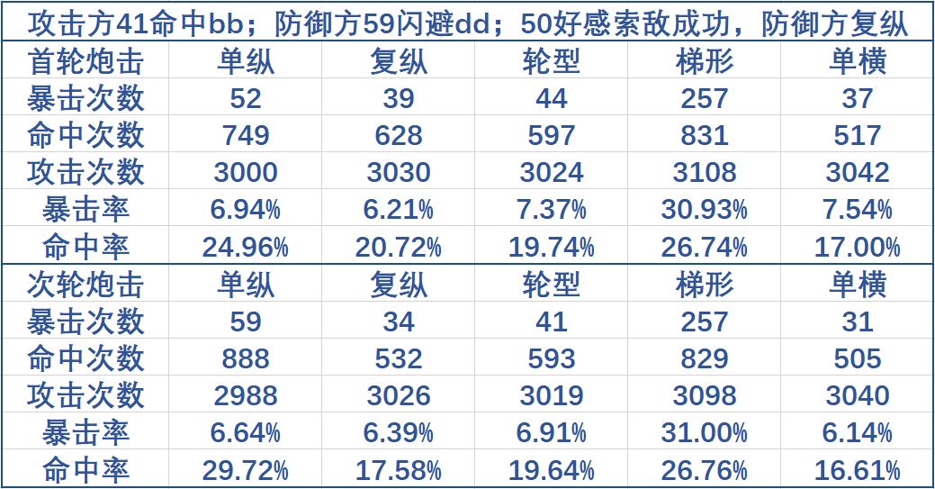 4.梯形:首次轮命中率几乎相等且均高于单纵首轮,但低于单纵次轮,有明显的暴击率加成