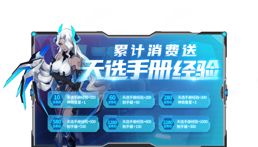 累计消费 10五色石 天选手册经验*100和神奇星星*1