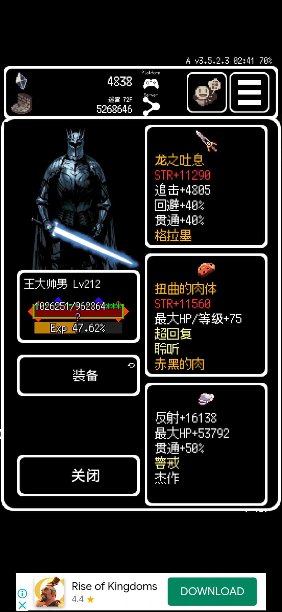 1.扭曲的肉源自装备:赤黑的肉,功能:STR=HP最大值