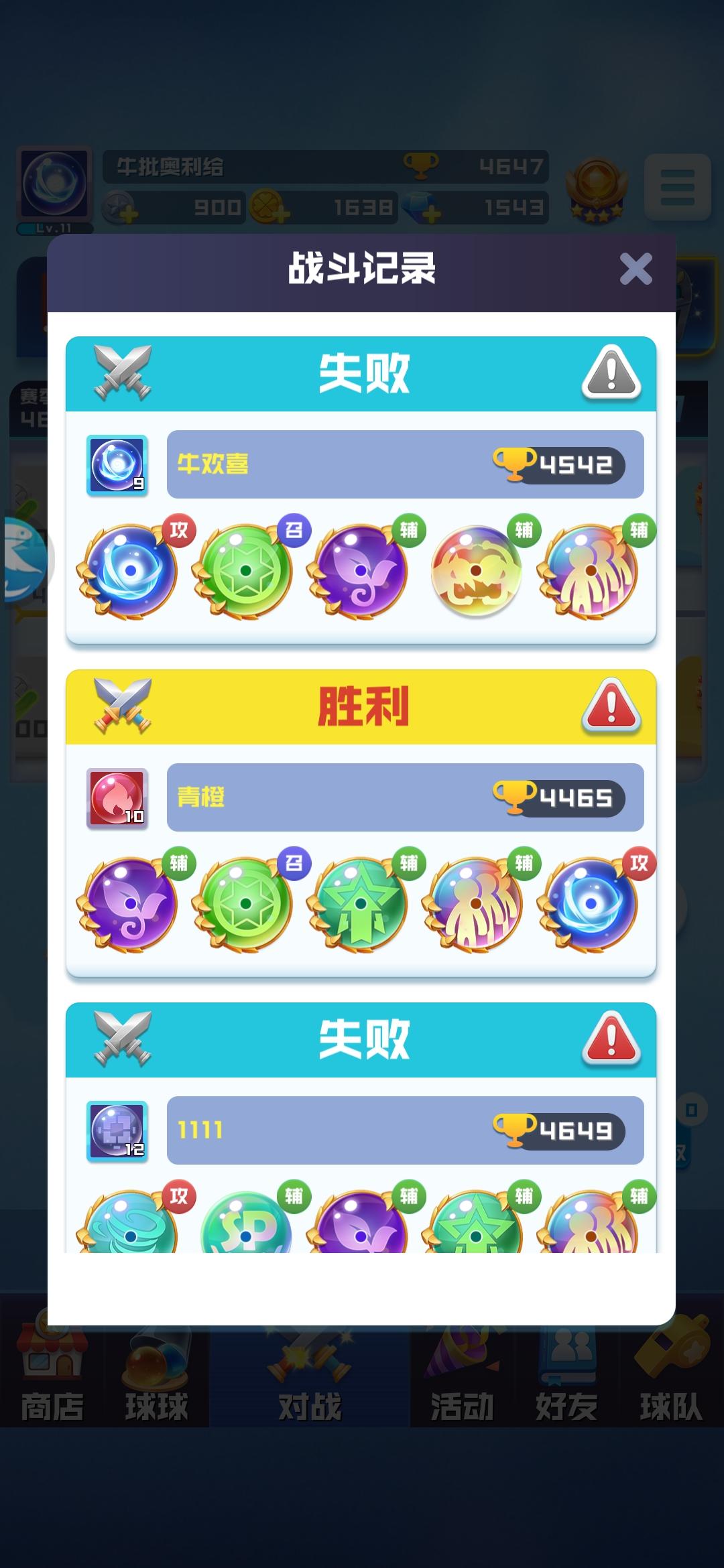 首先我是赢一次4700杯,然后碰到了对面和我一样的球,但是我带刀他没带刀,我认为我这把必赢了,结果到最后,我的球球无论质量还是数量都比他多比他好,我反而没打过,可以说全场都在压制他。下面上图