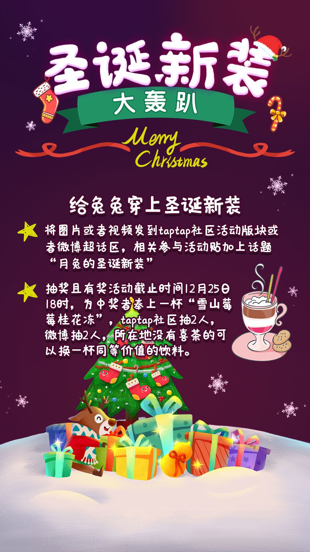 发表相关主题图片或者视频,带上话题#月兔的圣诞新装#