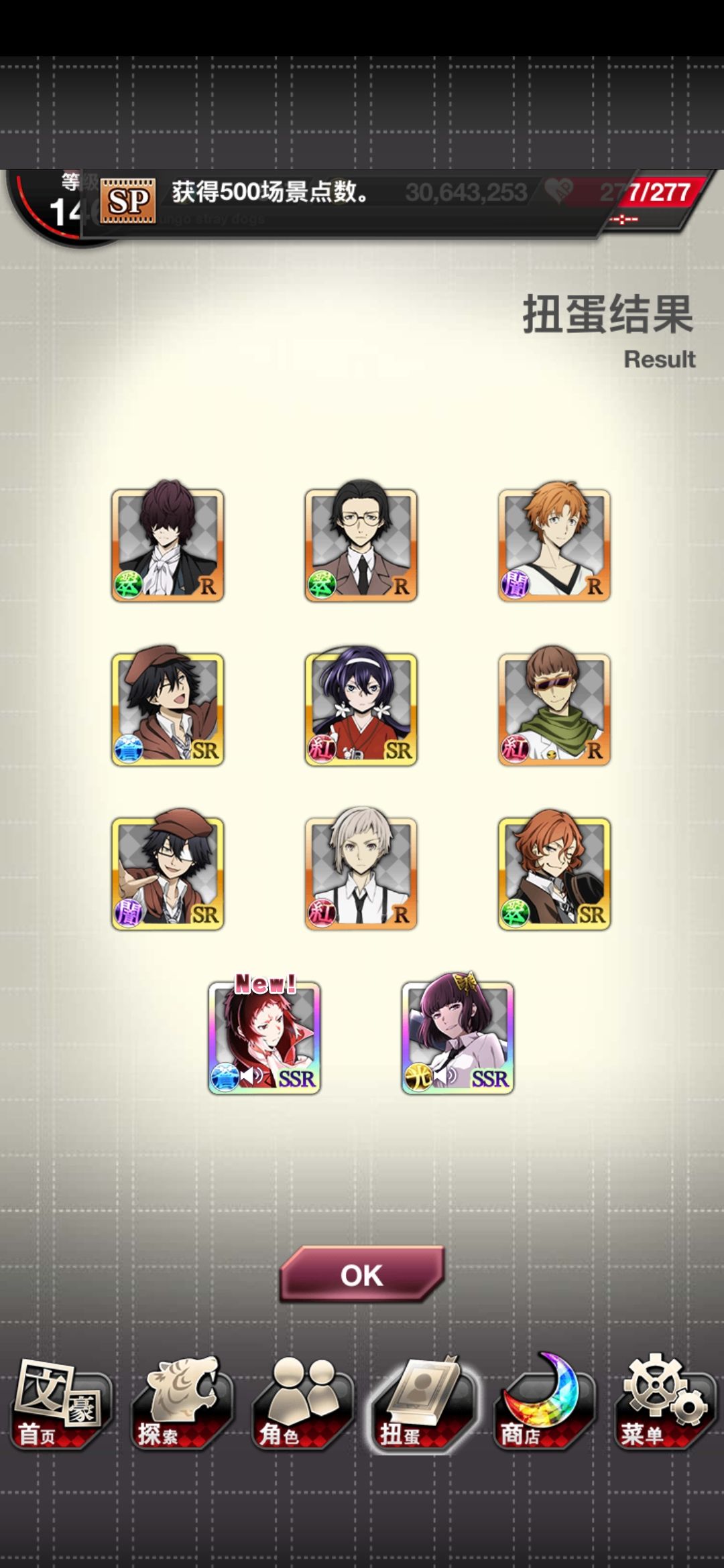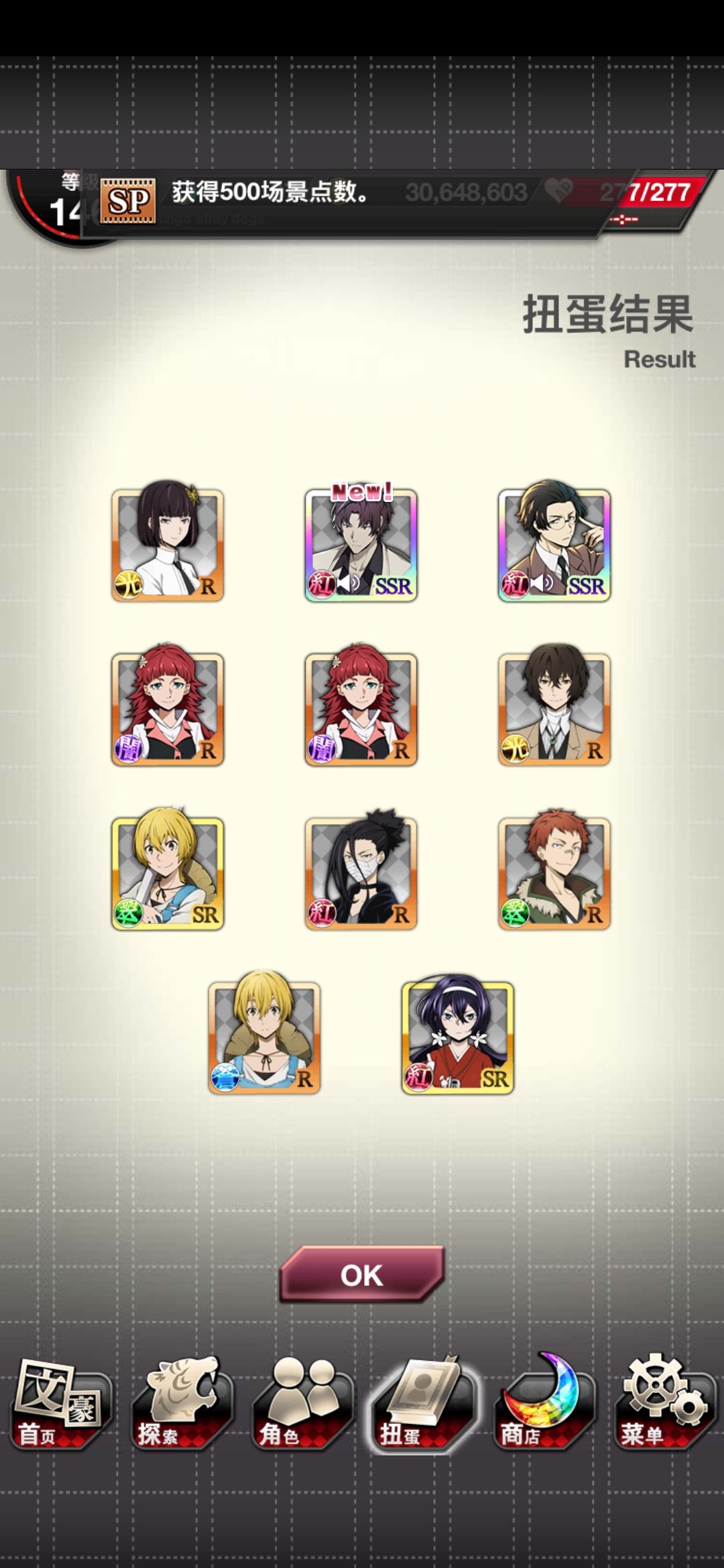 3发,第一发必出来了芥川,第二发啥都没有,第三发来了织田作