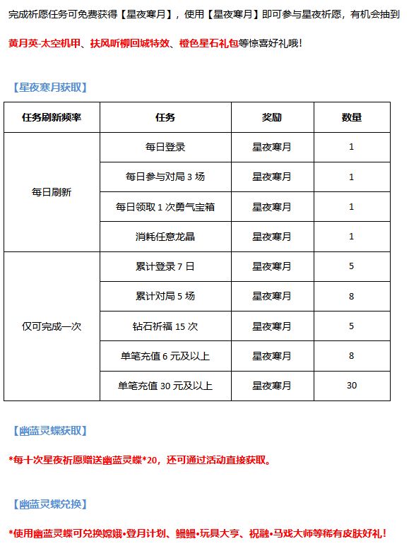 活动三、星夜祈愿抽豪礼,幽蓝灵蝶兑惊喜!