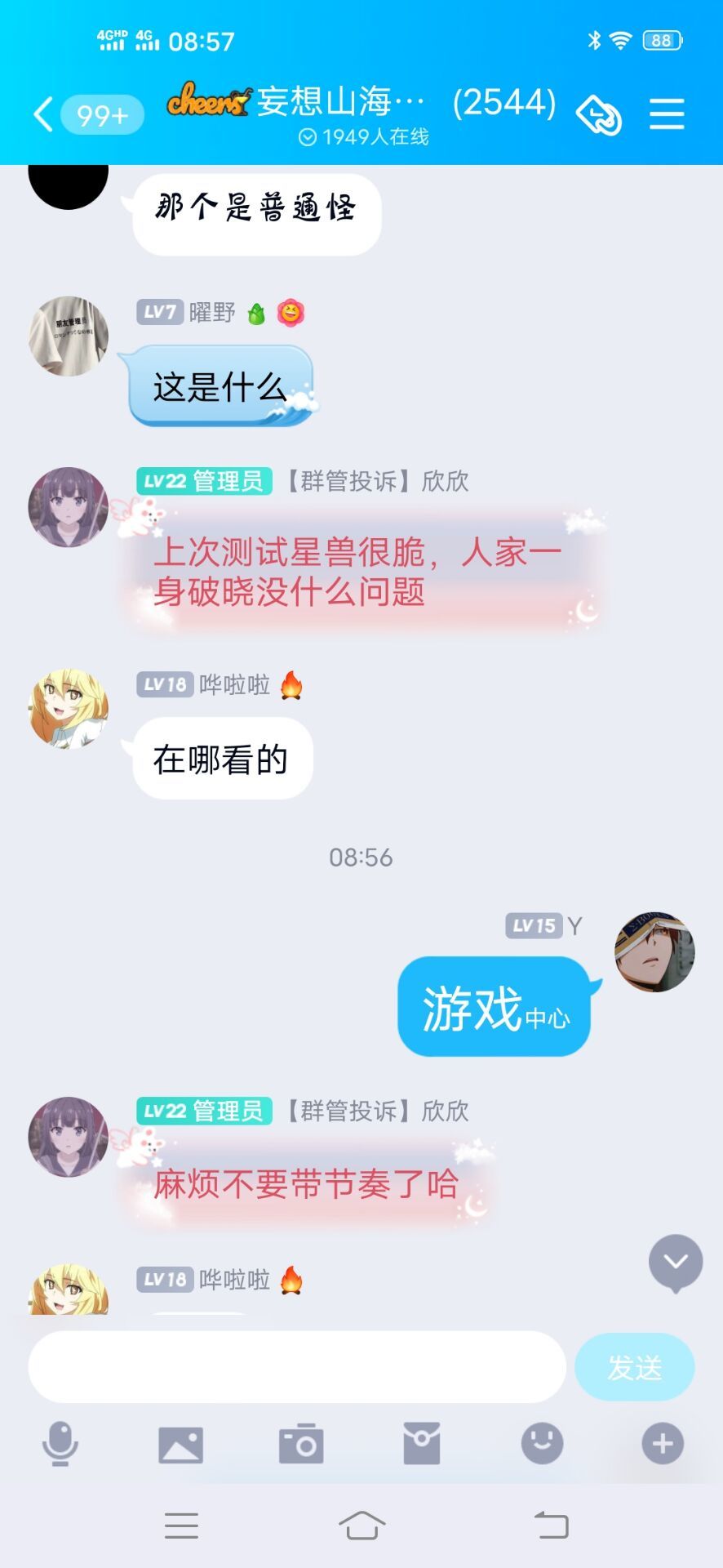 在妄想山海QQ游戏中心里,玩家发布外挂视频被审核通过并且被推荐为热门视频,被其他玩家质疑后询问官方群管理,管理回答:正常。让我们不要带节奏。
