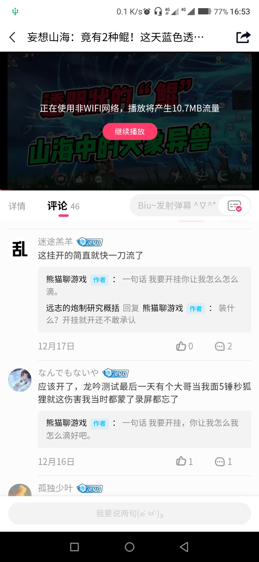 修改了两次帖子,附上了视频截图和评论截图