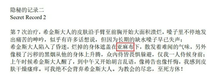 记录二中提到了教宗衣物的材质――亚麻布
