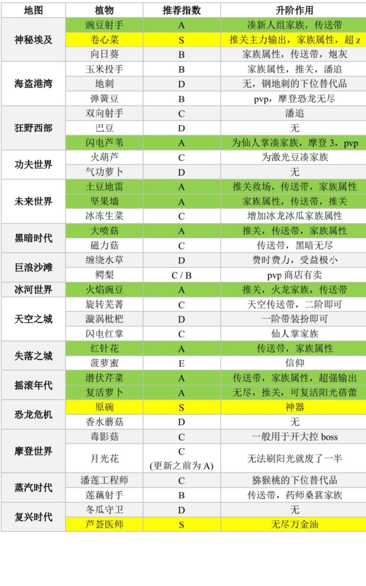 1. 推关:对于能够快速杀死僵尸从而快速通关的植物为优